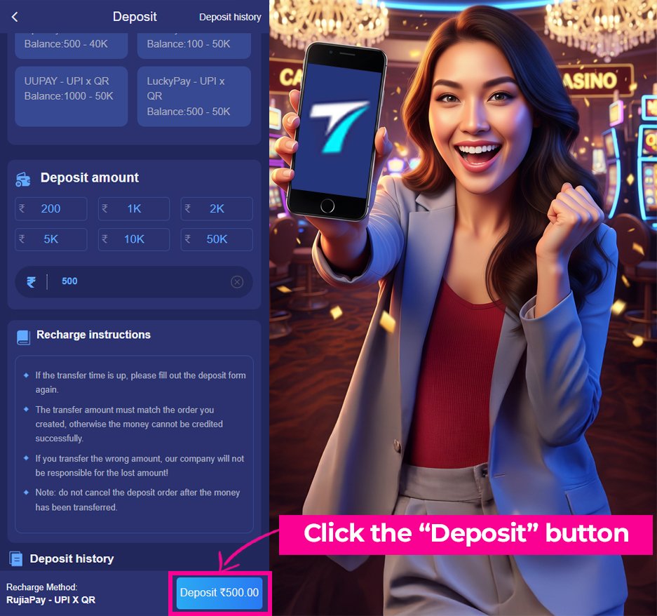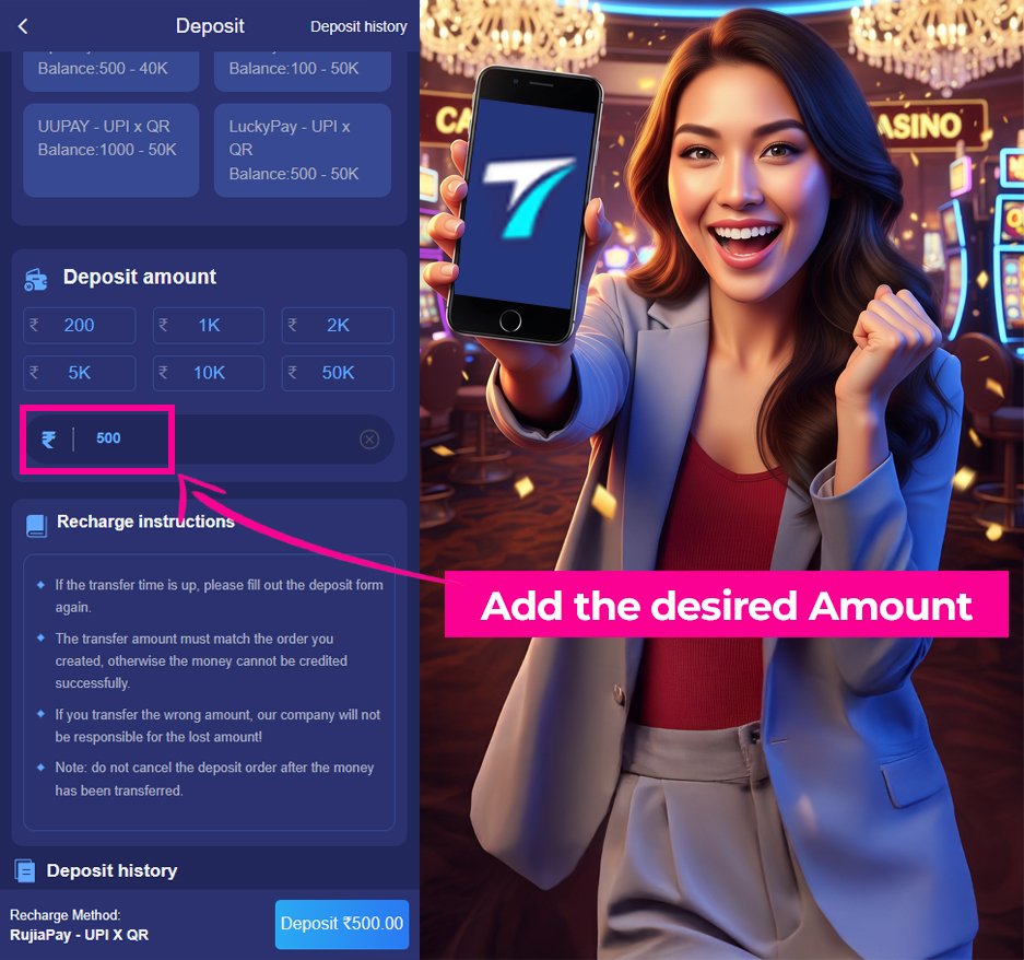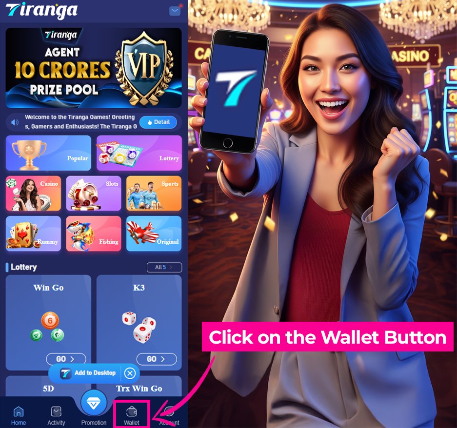 Once the deposit is successful, the amount will reflect in your wallet instantly. You are now ready to explore the Tiranga games and start playing with your updated balance.